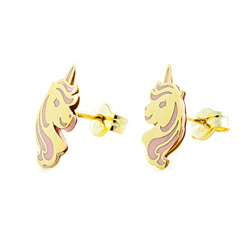 Orecchini da bambina in oro con unicorno grande smalto rosa