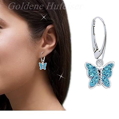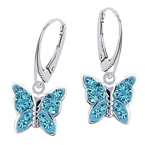 Orecchini da bambina in vero argento 925 con cristalli blu, Cristallo, cristallo