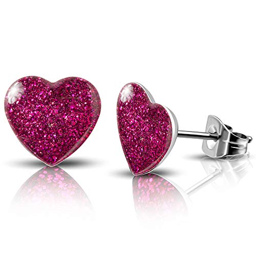 2 paia di orecchini: 1 paio di orecchini a forma di coniglio in vero argento Sterling 925 + 1 paio di orecchini a forma di cuore in acciaio inox glitterato, per bambine e ragazze.