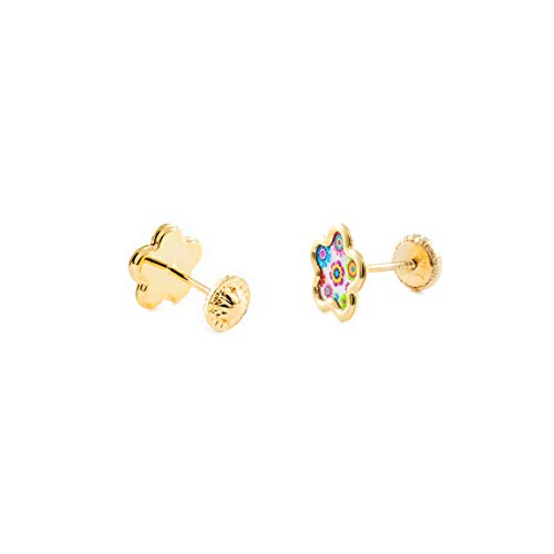 Orecchini per bambini margherita madreperla fiori- oro giallo 9k (375)