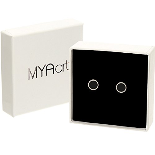 MYA art, orecchini Basics, a perno in acciaio inox, di colore oro o argento, con piastrina rotonda di colore nero