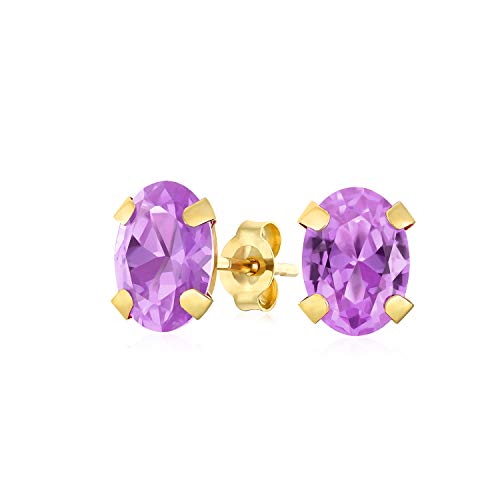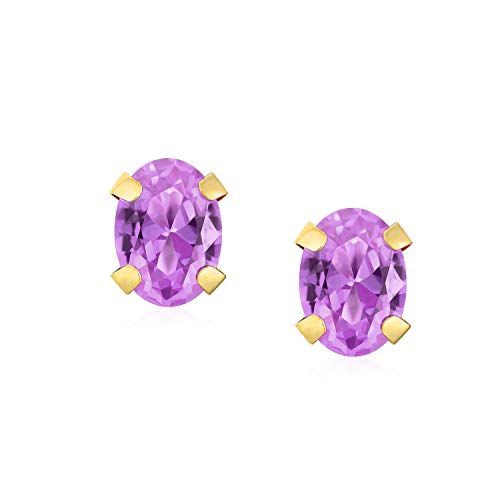 BORCHIE COLORATE - Aggiungi un tocco di colore ai tuoi outfit con questi orecchini a pietra di nascita in ametista viola genuino di forma ovale solitario, classico ametista viola genuino di febbraio. Sono realizzati in vero oro massiccio 14K e sono 7 mm per un look sottile. Orecchini pregiati per orecchie forate.