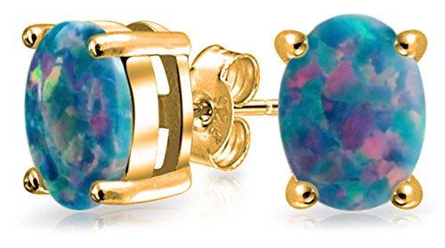 Orecchini borchie solitario opale creato nero Set 925 14K Oro Placcato Argento Sterling 7MM Ottobre Birthstone