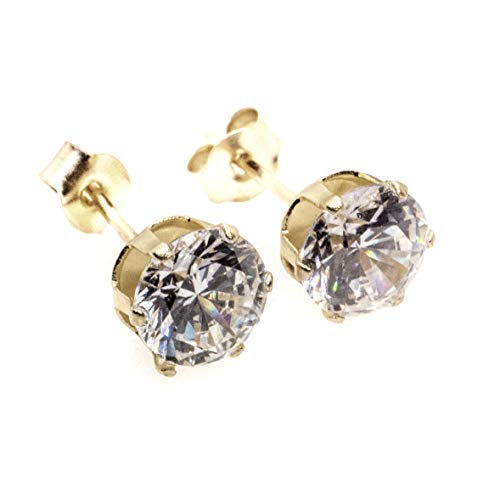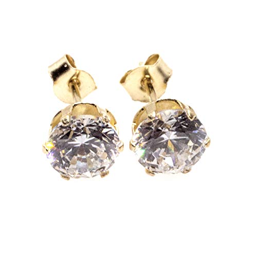Orecchini a bottoncino in oro giallo 9 carati con zirconia cubica e Oro giallo, colore: White, cod. AV-CZ17-NEW
