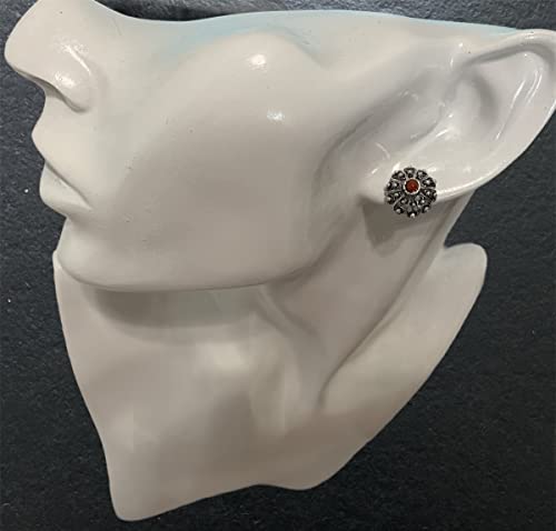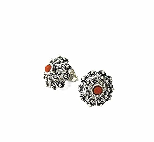 Orecchini Bottone diametro 1,3 cm con pietra centrale, Argento brunito (Turchese)