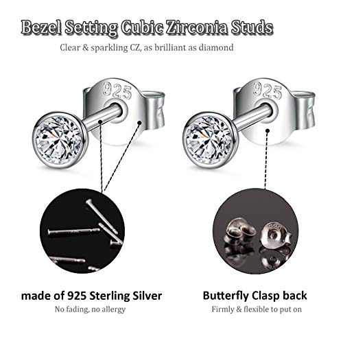 Orecchini a bottone da donna argento 925-3 paia Orecchini a bottone in argento sterling piccoli con cartilagine di zirconi scintillanti orecchini
