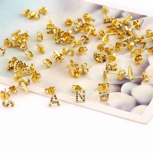 Orecchini a bottone con lettera iniziale piccola per donne Ragazze Arcobaleno di cristallo Alfabeto Orecchini a bottone con nome di moda Regali di gioielli ersw62Nützlich und praktisch
