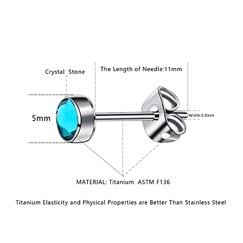 Orecchini a bottone in titanio per donna Orecchini da ragazza Orecchini da uomo blu ipoallergenici senza nichel da 5 mm per orecchie sensibili