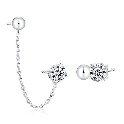 Orecchini a Catena Argento Sterling de Donna, Asimmetrici AAA Cubic Zirconia Ipoallergenici, Orecchini a Bottone da Donna