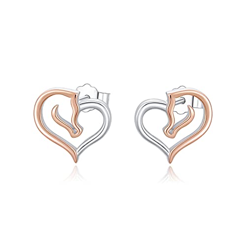 Orecchini a cavallo in argento sterling 925 orecchini a ferro di cavallo orecchini a forma di cuore in oro rosa orecchini a perno da donna ipoallergenici gioielli di Natale
