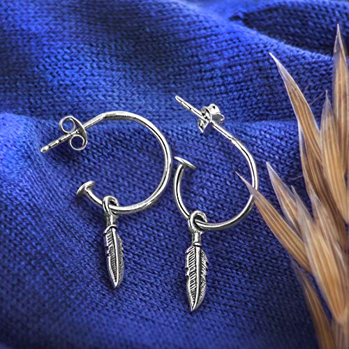 Orecchini Cerchio Aperto Piuma Argento Sterling 925 Chiusura Farfallina Senza Nickel e Anallergici Donna Uomo Unisex