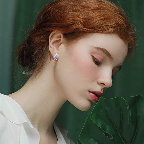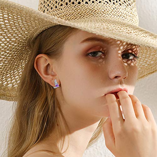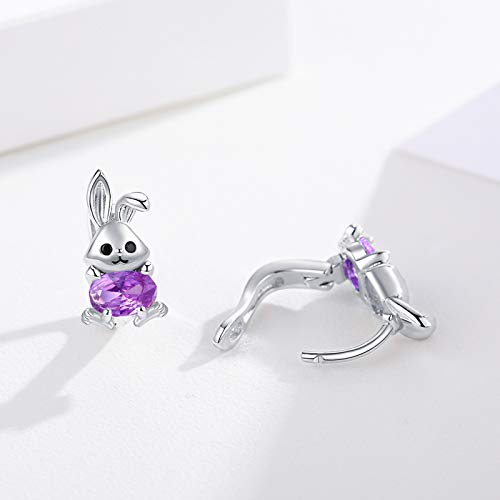 Orecchini a cerchio di coniglio in argento sterling 925 con zirconi cubici, Orecchini Coniglio Animale per ragazze donne Orecchini coniglietto per bambini (Viola)