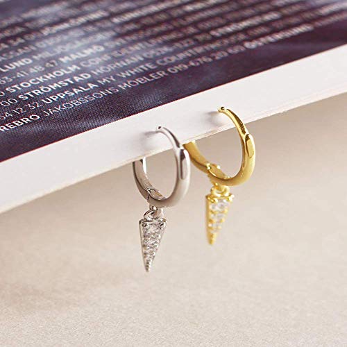 Orecchini a Cerchio Donna Argento 925 con Pendenti Placcati in oro 18 Carati Zirconia Ciondolo Triangolo Cerchi Orecchini Piccoli Lobo Anallergici 9mm