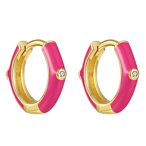 Orecchini a cerchio, da donna, in argento Sterling 925, smaltati rosa fucsia da 12 mm, chiusura a clip