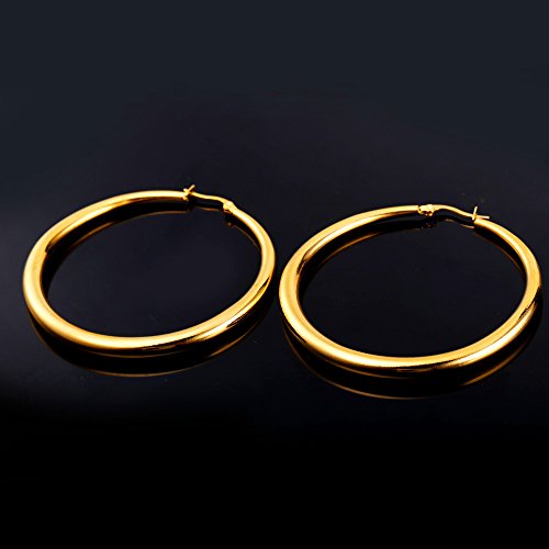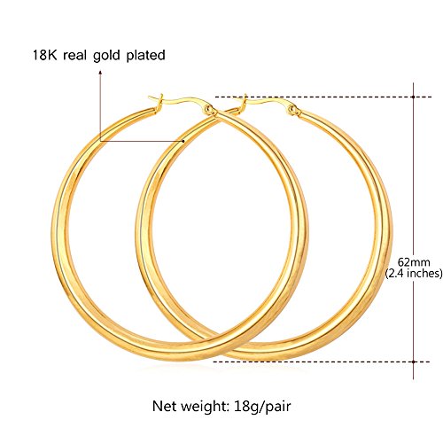 U7 Orecchini Cerchio Donna Grandi Ampi, Acciaio Inossidabile/Placcato Oro 18K, Gioielli alla Moda, Regalo Natale Anniversario Compleanno, Hip Hop, Diametro 62 mm, Argento Oro, con Confezione