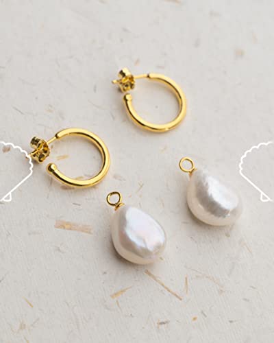 Orecchini a Cerchio da Donna con Perle Coltivate d'Acqua Dolce Grande Barocco da 11-13 mm SECRET & YOU - Argento Sterling 925 Placcato in Oro. Le Perle Sono Rimovibili Per Indossare Solo Gli Anelli.