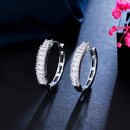 Orecchini a cerchio da donna placcati in oro e argento 18k, orecchini a cerchio ipoallergenici con zirconi per ragazze (# 1 Placcato argento/Zircone a singola)