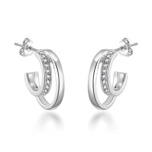 Realizzato con fiducia. Orecchini a doppio cerchio aperti placcati in argento creati con cristalli Zircondia di Philip Jones. Acquista con fiducia con la nostra garanzia di 1 anno e ricevi i tuoi soldi se non sei soddisfatto al 100% dei tuoi orecchini. La nostra consegna gratuita e spedizione rapida assicurano che i tuoi orecchini saranno con te prontamente.