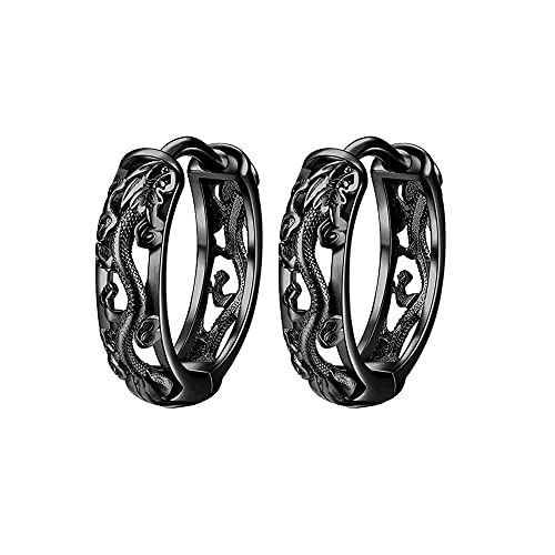 Orecchini a cerchio in filigrana con drago punk, per donne, uomini, ragazzi, ragazze, animali personalizzati, in argento Sterling, con cerniera a forma di cerchio, per fidanzato, 11 mm, colore: nero
