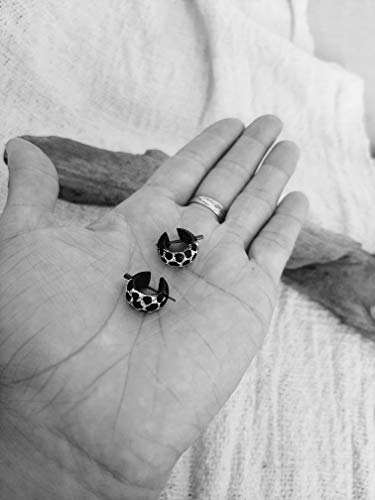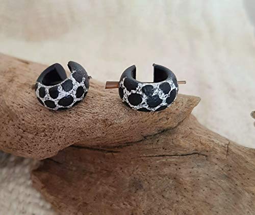 Orecchini a cerchio in legno con finto dilatatore, colore: nero