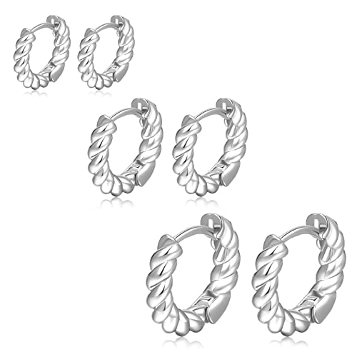 Orecchini Cerchio 3 Paia Oro Orecchini Donna Cerchio Piccolo Con AAA Cubic Zirconia Ipoallergenic Huggies Set Orecchini Cerchio Piccoli per Donna Uomo 8/10/12mm PABBEU