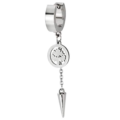 2 Orecchini a Cerchio con Pendenti Albero della Vita e Spillo Cono Catena, Orecchini da Donna Uomo, Acciaio