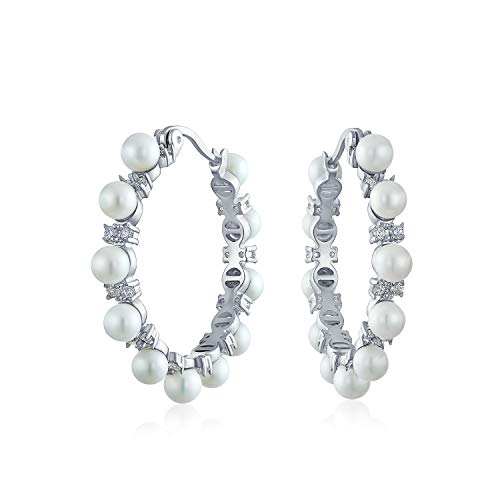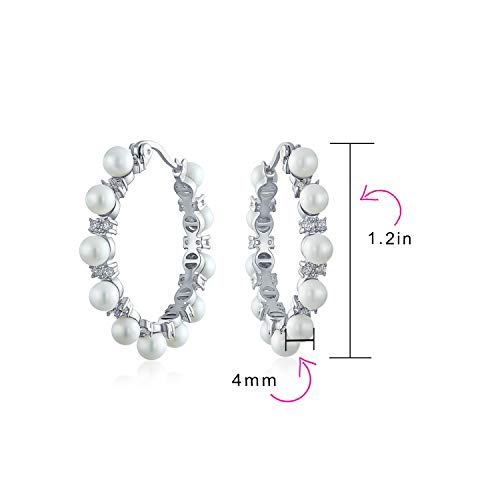Orecchini a cerchio perla simulata bianca simulata dal concorso nuziale per donne per adolescenti argento placcato 1.25 Dia
