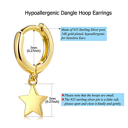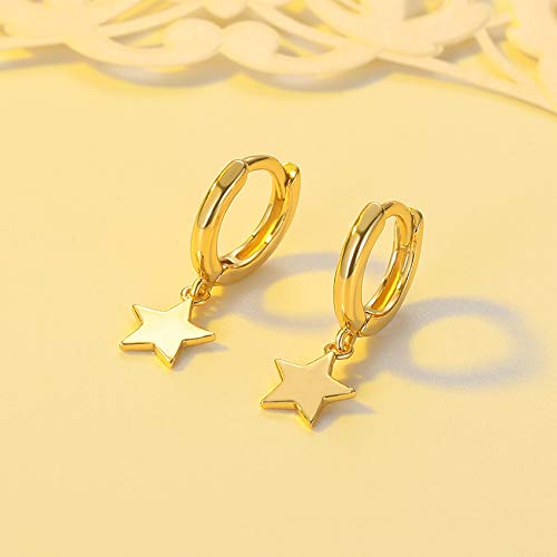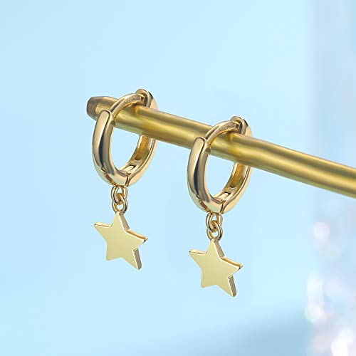 ♥ Orecchini a cerchio in oro ♥ Stile ciondolo: stella. Diametro interno del cerchio: 7 mm, opzioni uniche per cambiare il tuo look quotidiano. Lunghezza del posto: circa 1 mm, orecchini a cerchio sottili per donne e ragazze. Perfetto da impilare insieme o da solo per un look minimalista.
