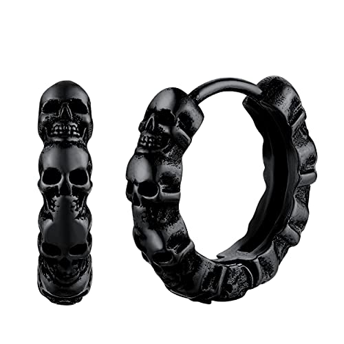 U7 Orecchini a Cerchio con Teschio Nero per le Donne Orecchini a Cerchio alla Moda alla Moda Orecchini Punk Orecchini Tribù