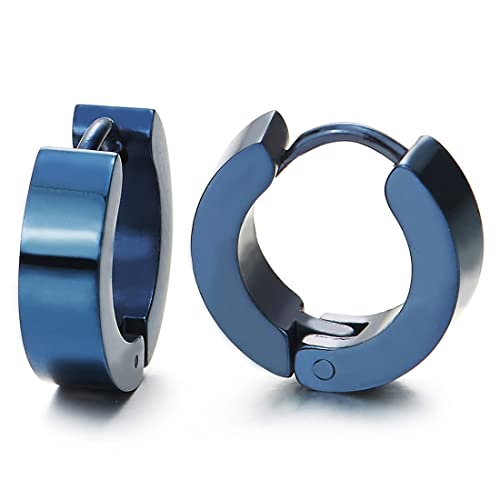 2 Orecchini a Cerchio, Orecchini da Uomo Donna, Acciaio Inossidabile, Blu Scuro
