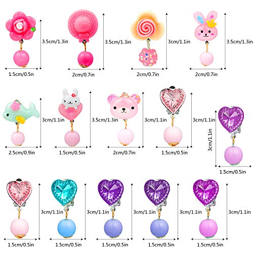 Orecchini Clip Bambina, Comius 14 Paia Orecchini Clip Bambina Orecchini in Resina Fiore Carino Regalo di Compleanno per Ragazze (C)