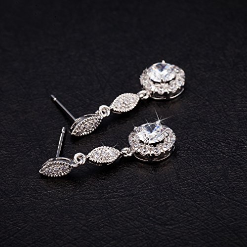 Orecchini Collana Gioielli Set, Oro bianco Placcato Solitaire Cubic Zirconia, regalo perfetto per le donne