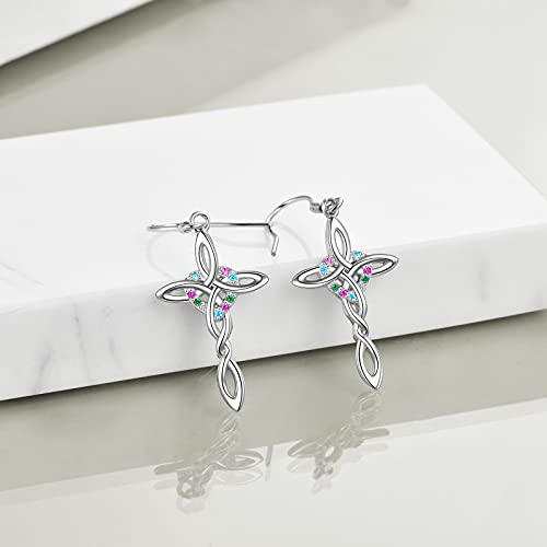 Orecchini croce religiosi in argento sterling Orecchini croce nodo celtico per donne adolescenti