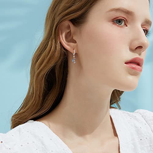 Orecchini Delfino Argento, Argento Sterling 925/WS Acquamarina & Acquamarina Scuro Orecchini A Cerchio Delfino, Orecchini Pendenti Delfino Animale Carino, Orecchini Delfino Energia Amore