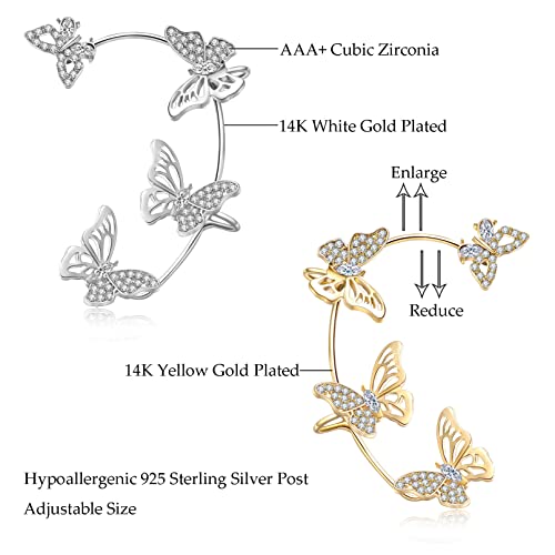 Orecchini Donna Argento, Farfalla Orecchini Anallergici e Regolabile con Scintillanti Zirconi, Regalo di Gioielli Orecchini Argento 925