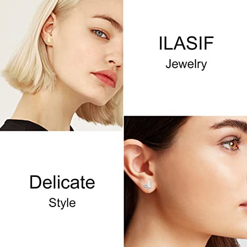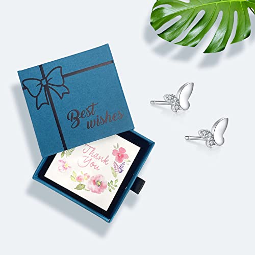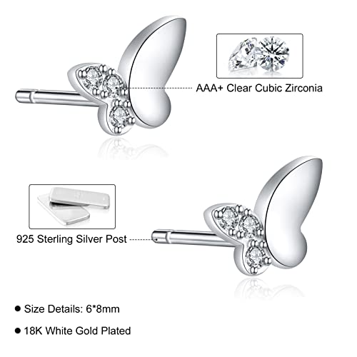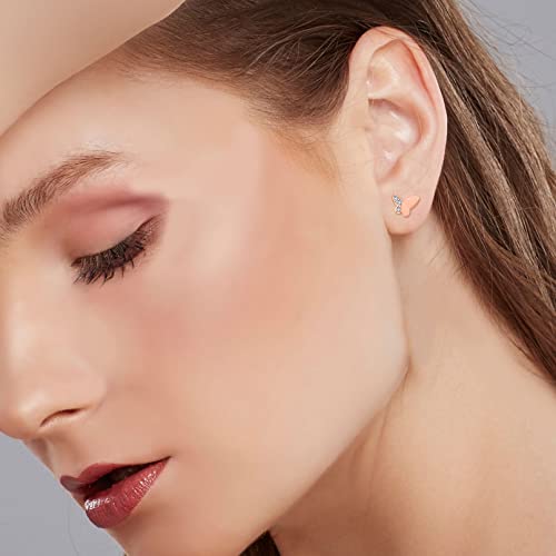 Orecchini Donna in Argento 925, Orecchini Piccoli Ipoallergenic con Zirconia Cubica, Regalo di Gioielli Orecchini a farfalla di Argento/ Oro/ Oro rosa