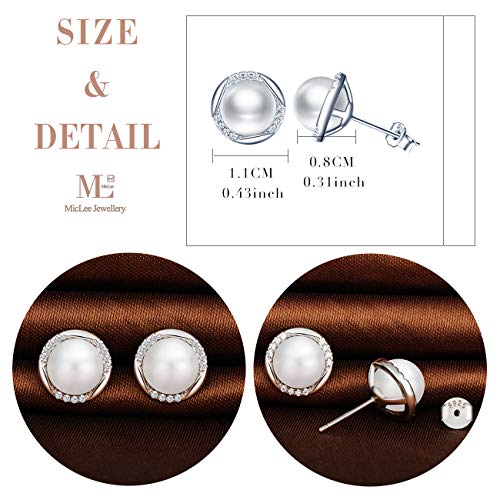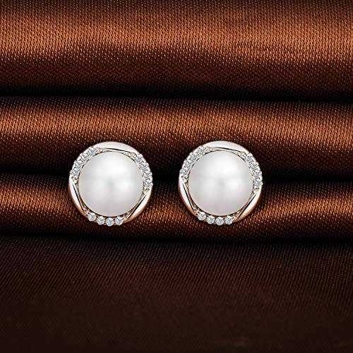Orecchini da donna in argento Sterling 925, eleganti orecchini a perno con perla intarsiata, brillanti, regalo per compleanno, San Valentino e Natale. e Argento, colore: bianco, cod. IUM0110-white
