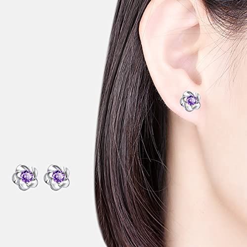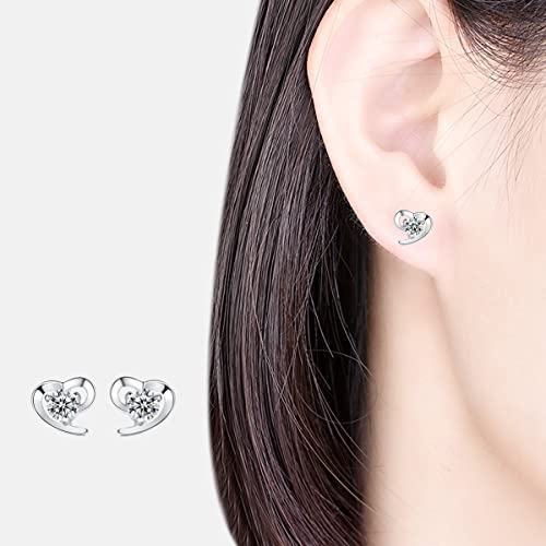 Orecchini da donna in argento Orecchini in argento sterling 925 con zirconi cubici Set di orecchini a bottone Perle d'argento Cuore rotondo di cristallo Farfalla Shamrock Fiore a bottone Set di orecch