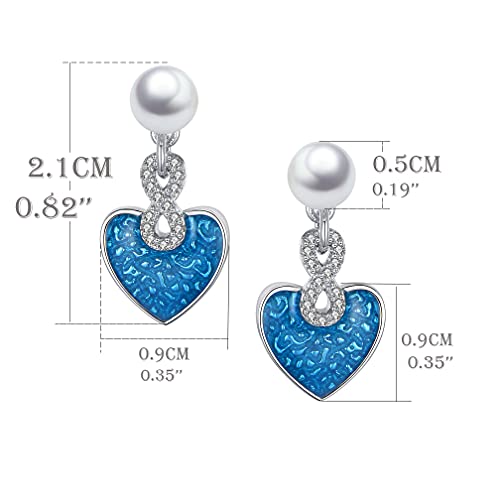 ❤ Orecchini pendenti blu: perle da 5 mm con orecchini in argento sterling 925 rodiato e zirconi trasparenti AAA+, senza nichel, senza piombo e cadmio