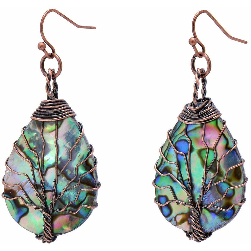 Orecchini pendenti con conchiglia di abalone naturale selezionati con motivo albero della vita di alta moda Orecchini con filo a mano lunghi 2 1/4 pollici, peso 12 grammi (0,4 once) / paio, misura perfetta per l'uso quotidiano La conchiglia di abalone ha il colore principale di blu e varia in base all'angolo di visione;