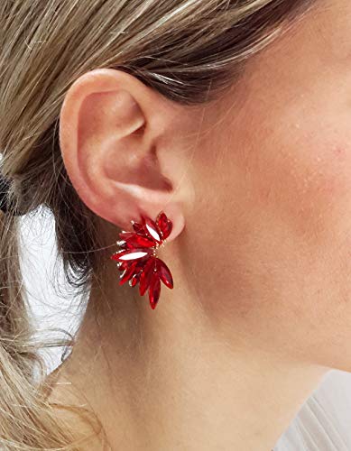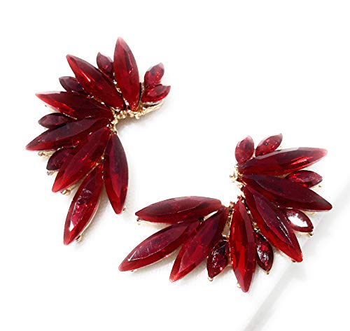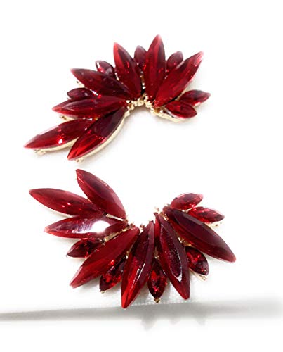Orecchini da donna con cristalli colorati, a forma di semicerchio, per feste e matrimoni, vari colori disponibili e placcato Oro, colore: rosso, dorato, cod. P.AbanicoRojO