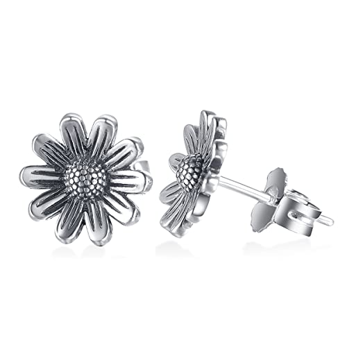 Orecchini da donna eleganti Orecchini con fiori squisiti Orecchini da donna in argento Orecchini con orecchini a bottone Gioielli da donna (crisantemo d'argento)