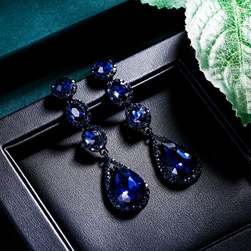 Orecchini donna,EVER FAITH Cristallo Matrimonio Moda goccia Lungo pendente Lampadario Orecchini Navy Blu Nero-fondo