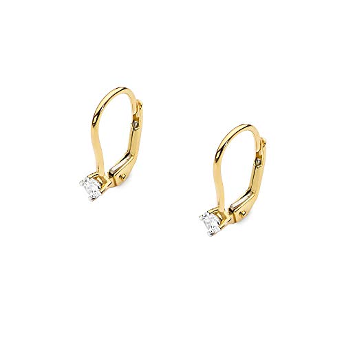 Orecchini da donna in oro giallo 585, 14 carati, con pratica chiusura a monachella, con diamanti