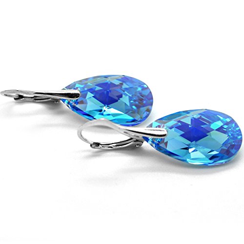 Orecchini da donna a goccia, color blu acquamarina, con cristalli Swarovski, in argento sterling 925, con chiusura a monachella.