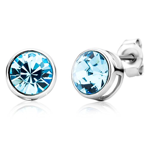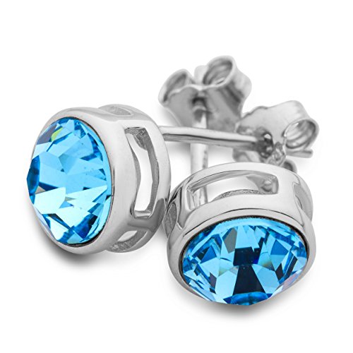 Orecchini per Donna Miore in argento 925 rodiato con zirconi blu Swarovski Element blu, taglio rotondo - MS009E