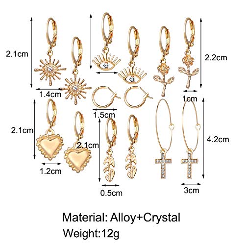 Orecchini da Donna 7 paia Set di Gioielli Set di Orecchini a Cerchio Orecchini a Cerchio Pendenti , Orecchini a Cerchio per Donna Ragazza (D'oro)