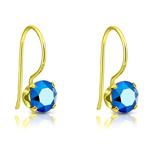 Orecchini Blu - Orecchini Azzurri - Orecchini Donna Oro Pendenti - Orecchini Colorati - Punto Luce Orecchini Dorati - Orecchini Piccoli Argento 925 Placcati Oro - Orecchini Oro Giallo - Orecchini Pendenti da Donna in Vero Argento Sterling Placcato in Oro Giallo timbrato 925