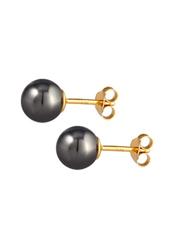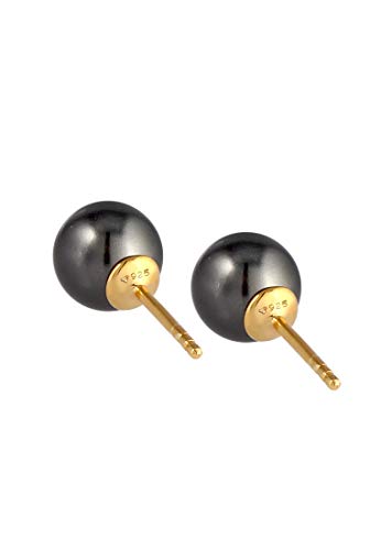 Orecchini da donna in oro con perle (8 mm) neri per donna, argento Sterling 925 placcato oro, orecchini da donna con perle, 0307263020