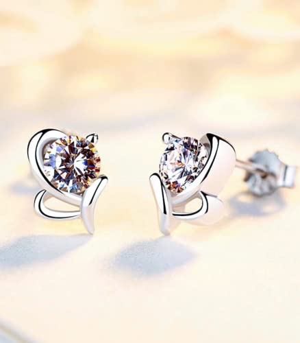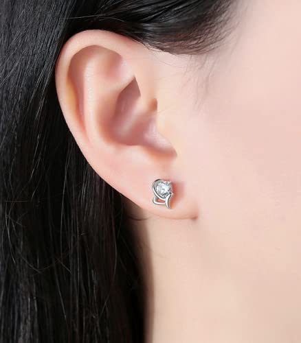 Orecchini Donna placcato ARGENTO con pietre PREZIOSE in zircone con Scatola per REGALO (Cuoricino)
